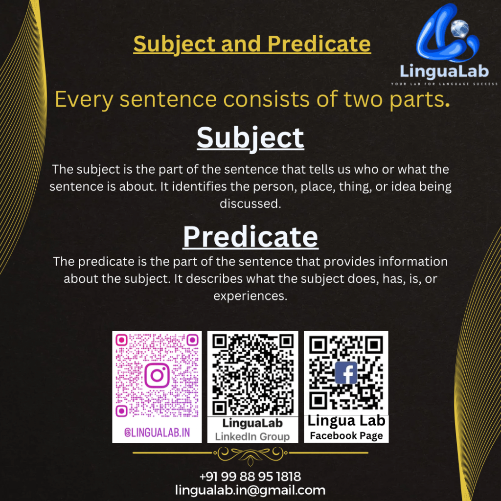 The predicate is the part of the sentence that provides information about the subject. It describes what the subject does, has, is, or experiences.
