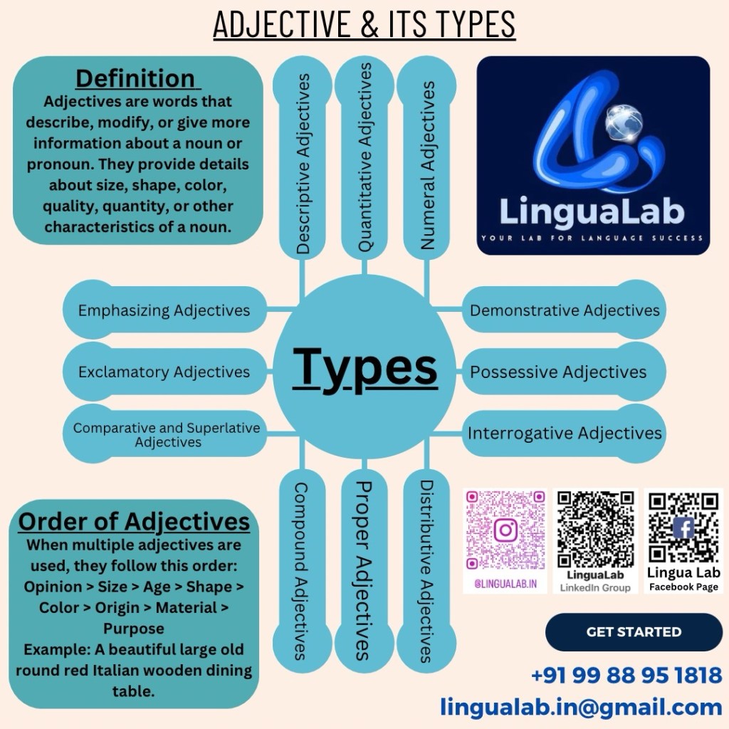 Adjectives are words that describe, modify, or give more information about a noun or pronoun. They provide details about size, shape, color, quality, quantity, or other characteristics of a noun. Understanding adjectives is essential for improving sentence structure and communication clarity.