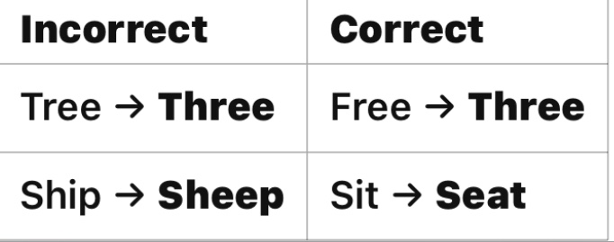 1. Minimal Pairs (Words That Sound Similar but Have Different Meanings)