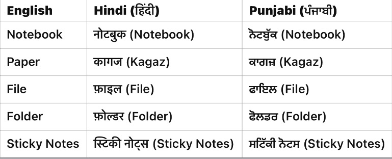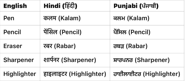 • Enhances Vocabulary: Learning these words in English, Hindi, and Punjabi helps multilingual individuals become more fluent.