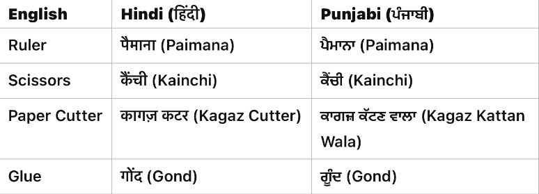 Understanding office and stationery items is essential for students, professionals, and language learners. By learning their names and uses in English, Hindi, and Punjabi, you can improve your vocabulary and communicate better in various settings.